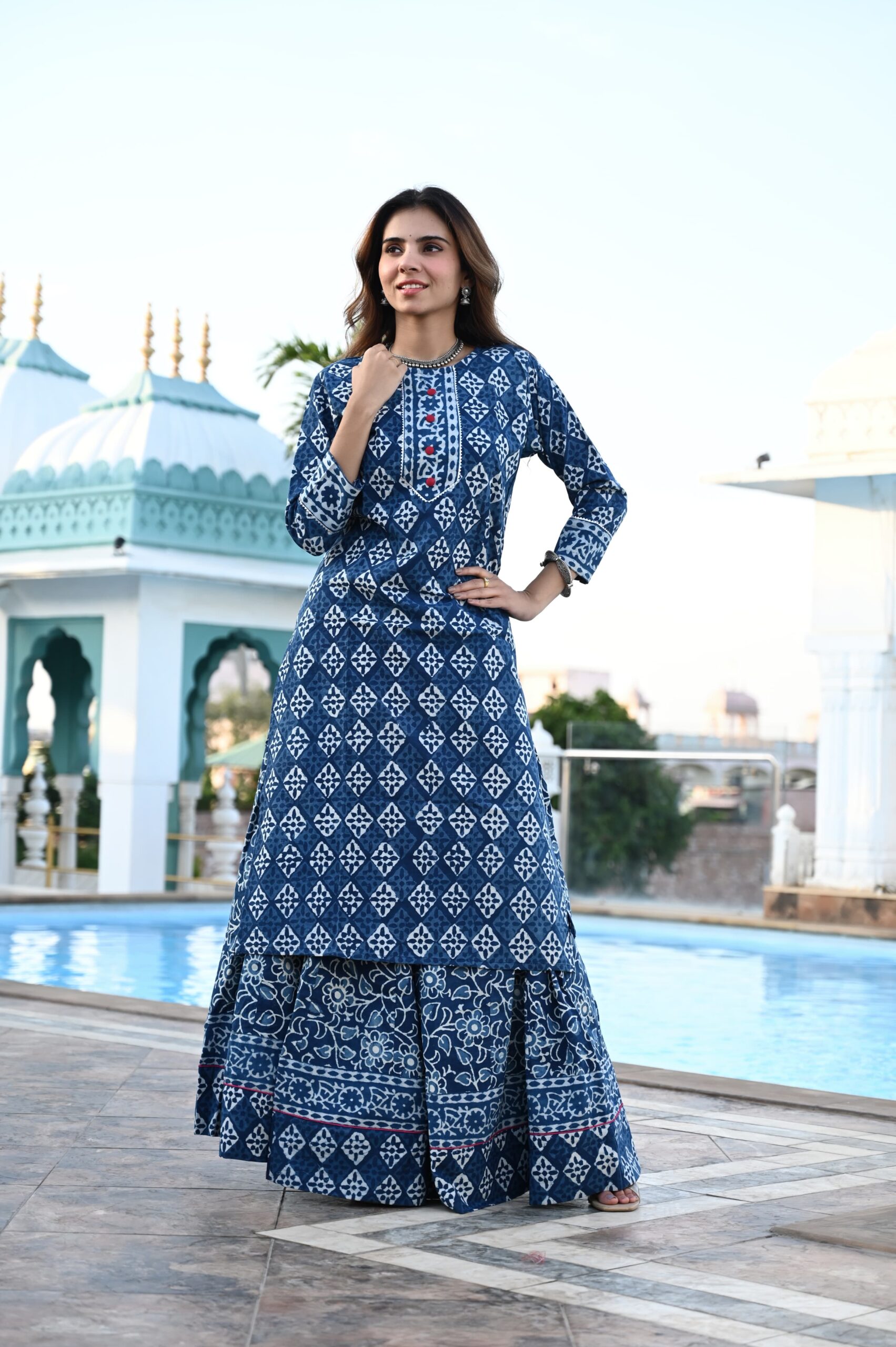 New collection of cotton hand block bagru printed skirt and kurta set available….